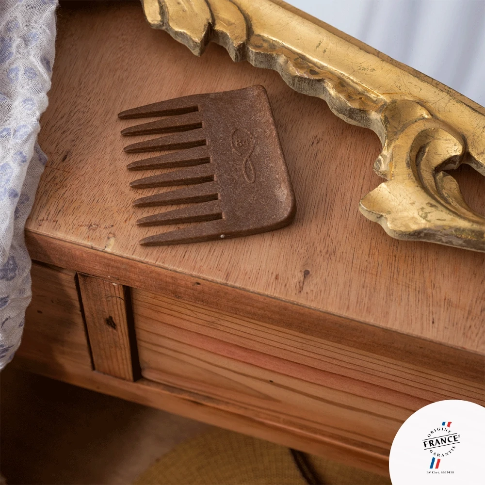 Le Peigne Coiffant Boucles & Volume pour cheveux bouclés, frisés ou crépus est un produit durable, en bioplastique à base de fibres de miscanthus.